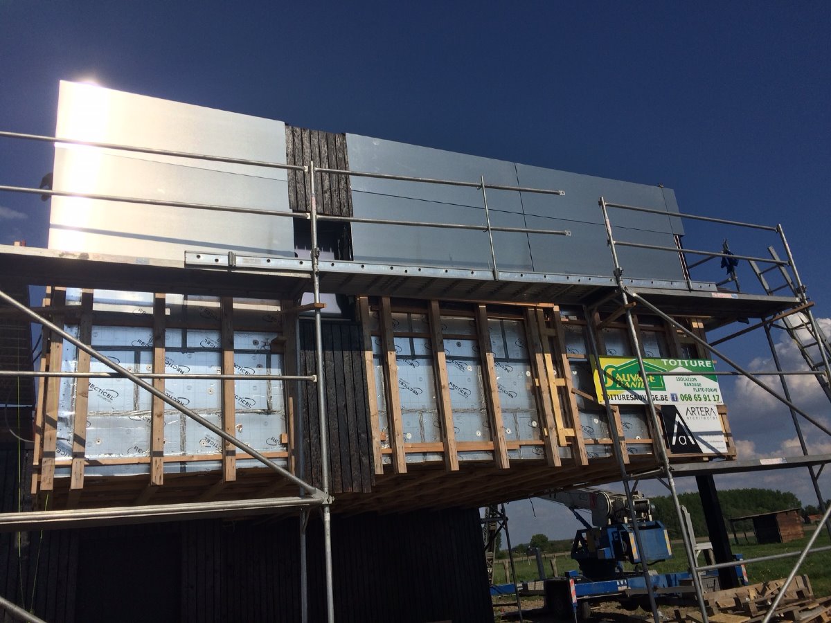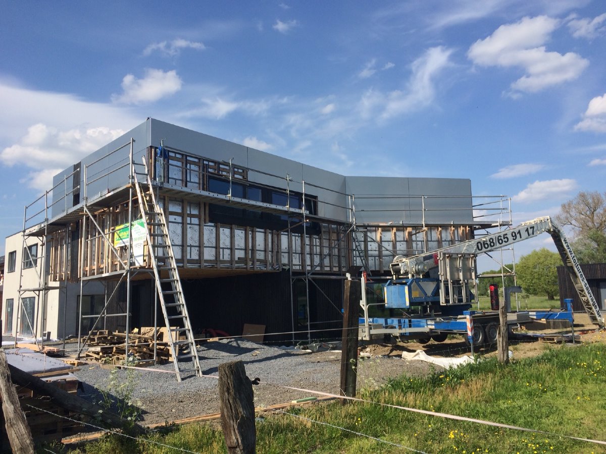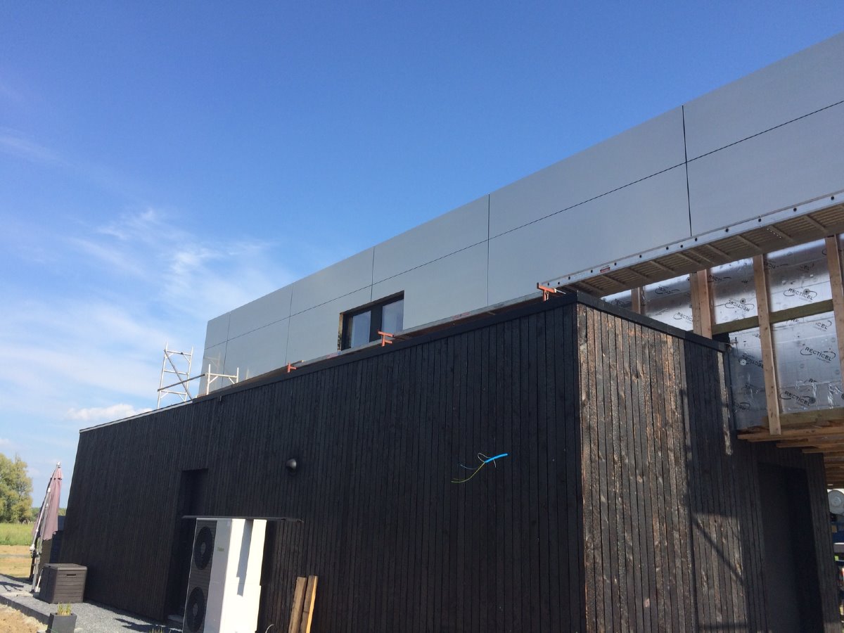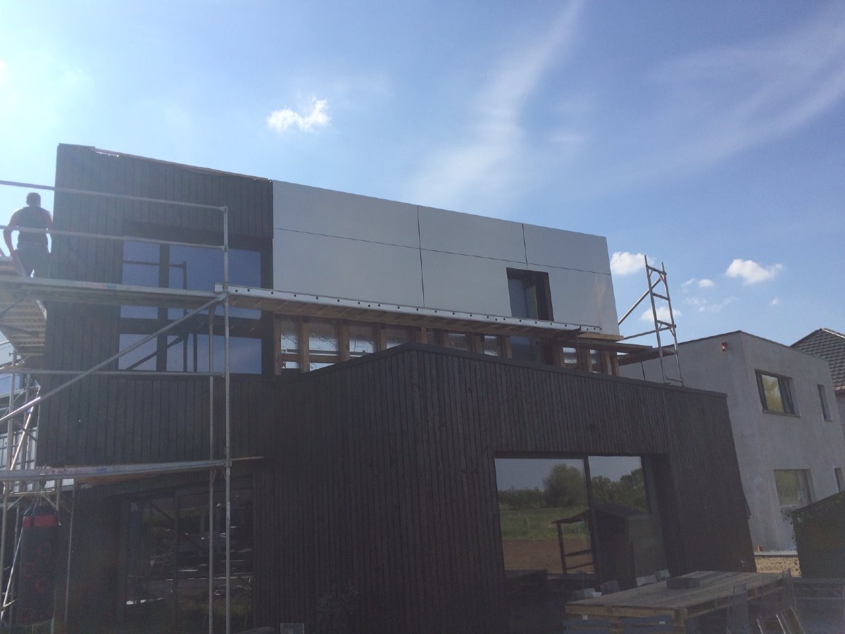 Bardage hêtre torréfié et panneaux fibre ciment SVK 3 photos